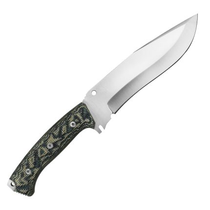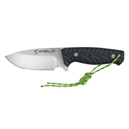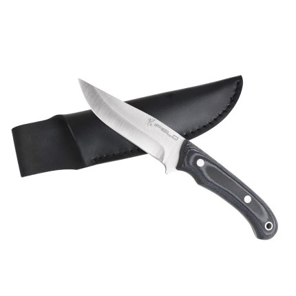 Cuchillo de caza deportivo de la marca iFIELD Camper, tamaño total de 22,8 cms, mango de Stamina decorada CNC, hoja de acero inox 3Cr13, incluye funda de piel, referencia EL29016