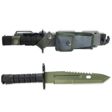 Cuchillo deportivo con mango negro de PVC, lomo dentado, total 32,5 cm, hoja de sierra de 20 cm de acero inoxidable, incluye funda y acople, referencia EL36004