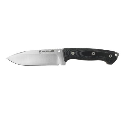 Cuchillo Outdoor y Supervivencia deportivo de la marca iField, modelo Workout, referencia EL29103, hoja MOVA de 11,7 cm, mango micarta negra, acabado satinado, longitud total 24,2 cm, con funda de piel color negro