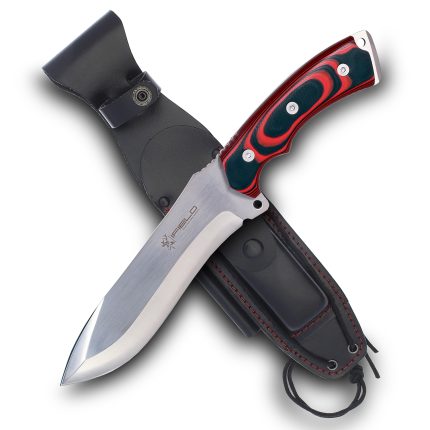 Cuchillo Outdoor y Supervivencia deportivo de la marca iField, modelo Workout, referencia EL29116, mango TRF negro pulido, hoja de 11,5 cms, funda de piel de alta calidad color negro, herramienta de camping para pesca, caza, actividad deportiva