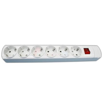 Base Eléctrica 6 Tomas Schuko con Interruptor Luminoso SIN CABLE color Blanco