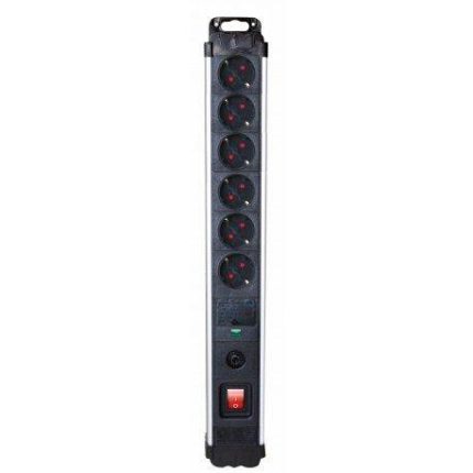 Base Electrica 6 Tomas Schuko Interruptor Luminoso cable 1,5 metros Aluminio NEGRO