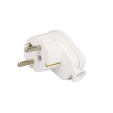 Conector de alimentación AC Macho Acodado Toma Tierra 16A/250Vac BLANCO