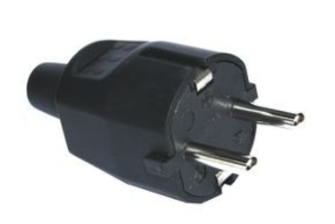 Clavija Macho Impermeable SCHUKO de Caucho Negro IP44