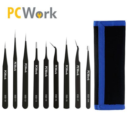 PCW08F Juego de pinzas protección ESD 8 piezas acero inoxidable