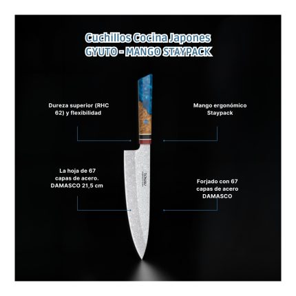 Cuchillo Cocina Profesional TOKYSU - Cuchillos Cocina Japones SMALL GYUTO de Acero DAMASCO 67 capas
