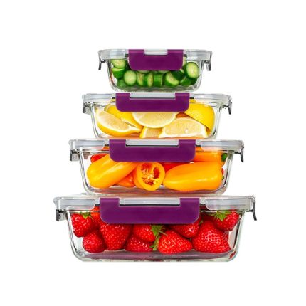 Recipientes de Cristal para Alimentos – 8 Piezas (4 recipientes y 4 tapas) – Apto para lavavajillas, Microondas y congelador – a