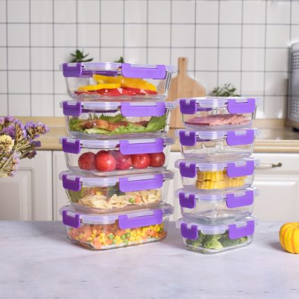 Recipientes de Cristal Para Alimentos – 20 Piezas (10 recipientes y 10 tapas) – Apto para lavavajillas, Microondas y congelador