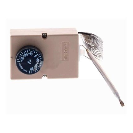 Termostato universal compatible con DANFOSS nº7. Temperatura Máximo: -24º/ -34º Temperatura Mínima: -10º/ -17º Señalización: -6º. Capilar Longitud: 2300 mm.