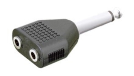 Adaptador mono 6.35 mm a doble hembra mono 3.5 mm.