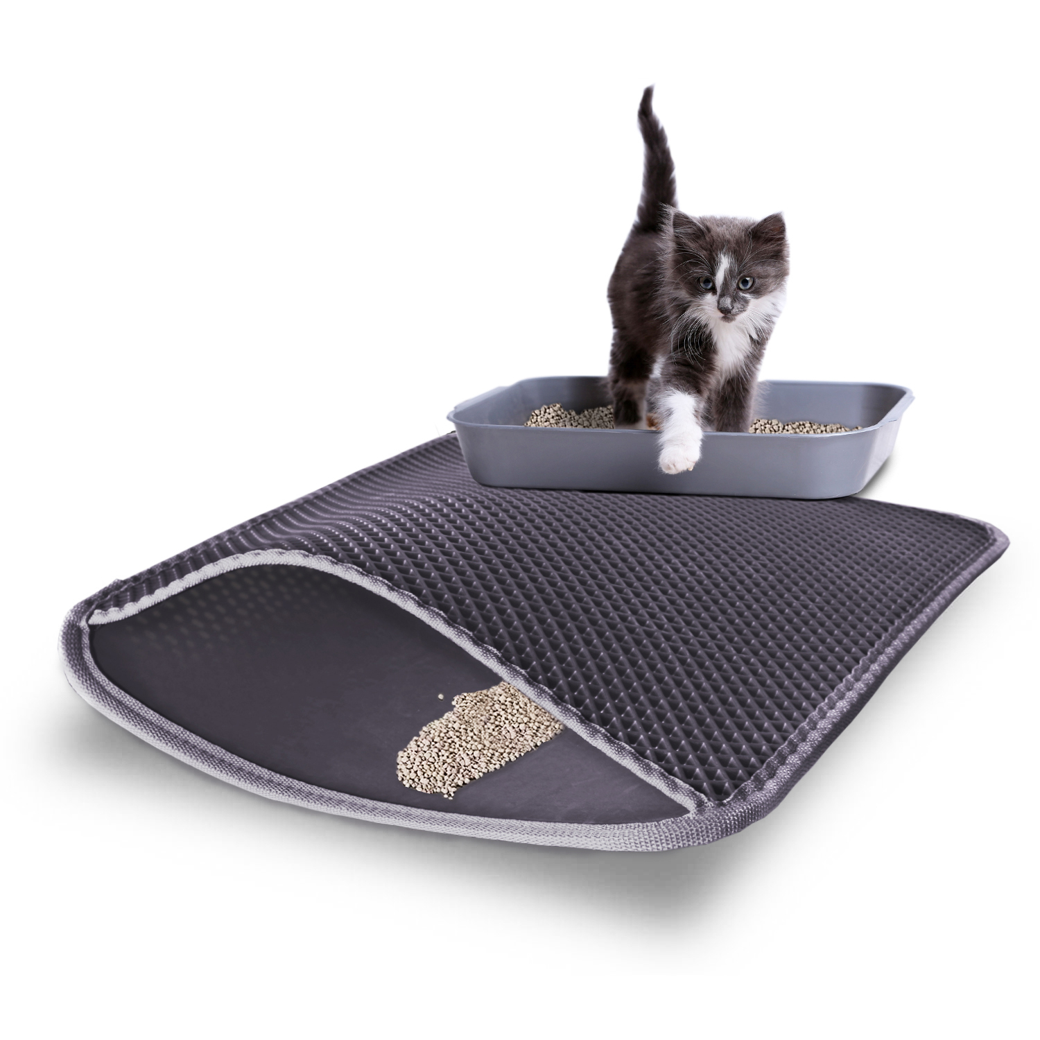 - Diseño en Rombo con orificios: Yatek Estera de Arena para Gatos Orificios de 1,2 cm de largo y 1,2 cm de ancho que son suficientes para capturar y atrapar eficazmente los gránulos de basura, dejándolos pasar a través de los orificios hasta la capa inferior. Alfombra de doble capa, Talla L (76,5 x 61,5 cm) recoge grandes cantidades de basura de gato para que usted pueda verterla fácilmente de nuevo en la caja de arena.