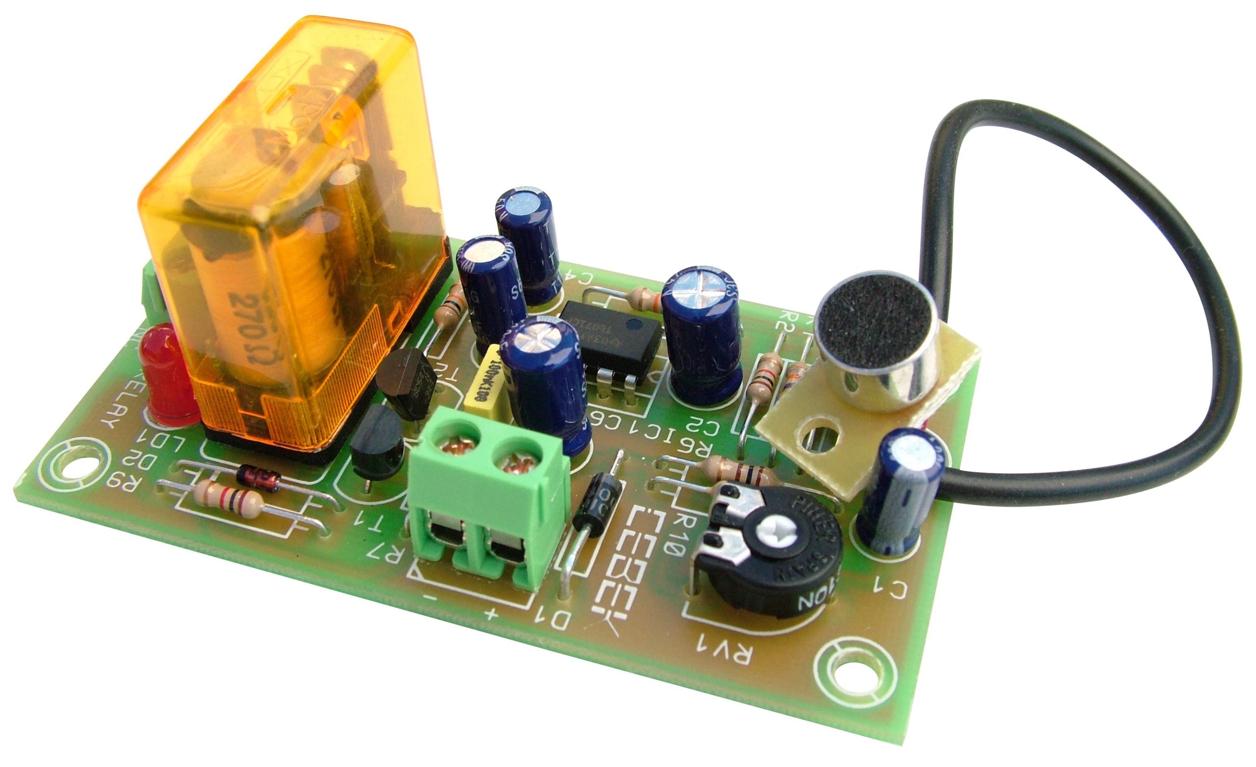 • Automatismo de conexión por sonido con salida a relé.