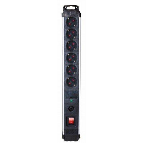 Base Electrica 6 Tomas Schuko Interruptor Luminoso cable 1,5 metros Aluminio NEGRO