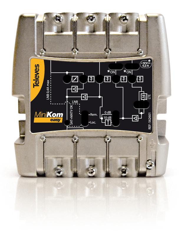 Las centrales MinikomEasyF de Televes son compactas de pequeño tamaño, gracias a su fuente de alimentación conmutada se garantiza un funcionamiento óptimo y un bajo consumo.