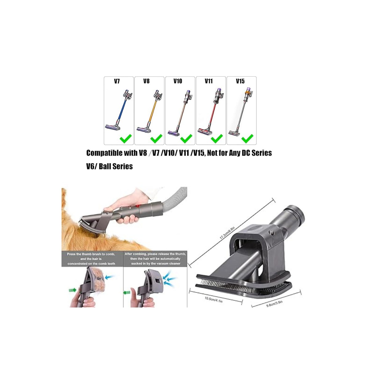 El Cepillo Aspirador para Mascotas es la solución ideal para mantener tu hogar libre de pelos de tus mascotas de forma rápida y eficiente. Este cepillo multifuncional, con un diseño sofisticado, ofrece una limpieza sin esfuerzo, combinando la potencia de tu aspiradora con la facilidad de un peine para mascotas. Es adecuado para perros con pelajes de longitud media, así como para gatos, proporcionando una experiencia cómoda tanto para ti como para tu mascota. Gracias a su compatibilidad con los modelos Dyson V15, V12, V11, V10, V8 y V7, podrás aprovechar al máximo su versatilidad. El cepillo viene con un tubo de extensión que permite alargar tu aspiradora hasta 150 cm, facilitando el acceso a zonas difíciles y optimizando el tiempo que inviertes en la limpieza de superficies amplias. Además, después de cada uso, el tubo puede volver a su tamaño original, ahorrando espacio de almacenamiento. El mango ergonómico de este cepillo garantiza un agarre cómodo y seguro, mientras que las cerdas de acero inoxidable se encargan de eliminar el pelo sin rayar la piel de tu mascota. Este completo set de accesorios incluye un peine aspirador para perros, un tubo de extensión flexible, un adaptador. Estamos comprometidos con tu satisfacción, por lo que si tienes cualquier duda o sugerencia, nuestro equipo de atención al cliente estará encantado de asistirte para brindarte la mejor experiencia de compra posible.