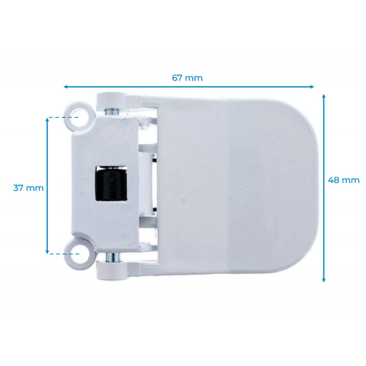 Cierre puerta lavadora. Anclaje: 2 tornillos, distancia 37 mm Medida de ancho: 48mm Color: Blanco Pestillo de plástico, color negro Marcas: ASPES, EDESA y FAGOR Modelos: L41, L42, L43, L54, L84 _x000D_