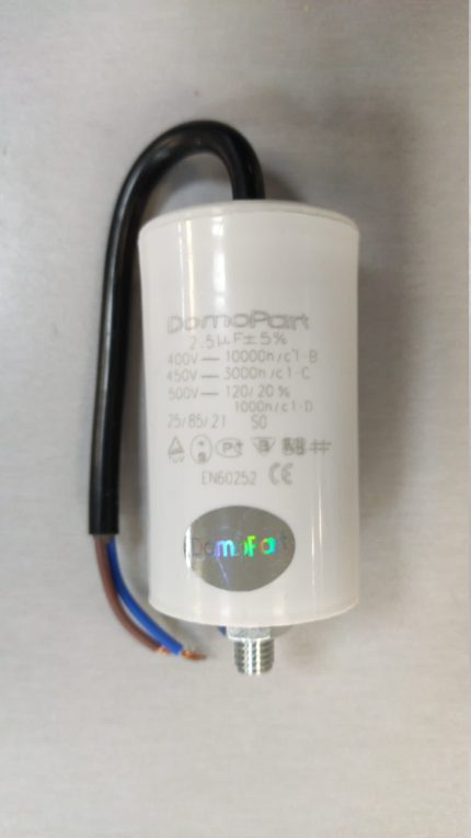 Condensador Trabajo Motor 2,5uF 450Vac Medidas 30x59mm Con CABLES 2,24 €