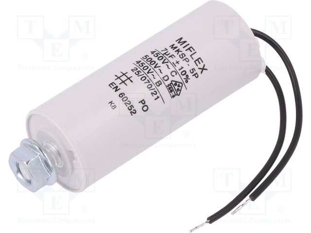 Condensador Trabajo Motor 7uF 450Vac 30x78mm Con CABLES
