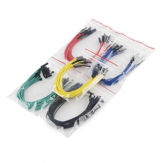 Set de cables de alta calidad para placa de prototipo. Incluye 100 unidades terminadas en hembra/hembra, empaquetados en varios colores. Éste set de cables es ideal para disponer de cables de alta calidad cuando se realiza un prototipo sobre una placa de ensayo. Todos los cables están terminados por los dos lados como hembra. Para facilitar el montaje, se entregan en 5 paquetes separados por colores, de 20 unidades cada uno. El largo de cada cable es de unos 15cm.