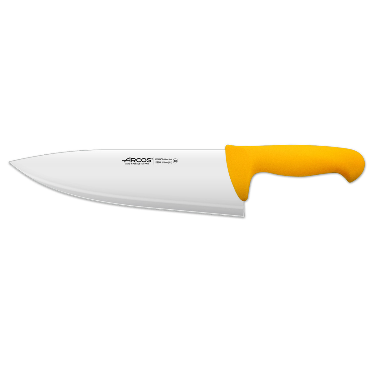 Cuchillo de Carnicero Arcos Colour – Prof 296800 de acero inoxidable Nitrum y mango ergonómico de Polipropileno de color amarillo y hoja de 27.5 cm, y 4 mm de espesor en estuche