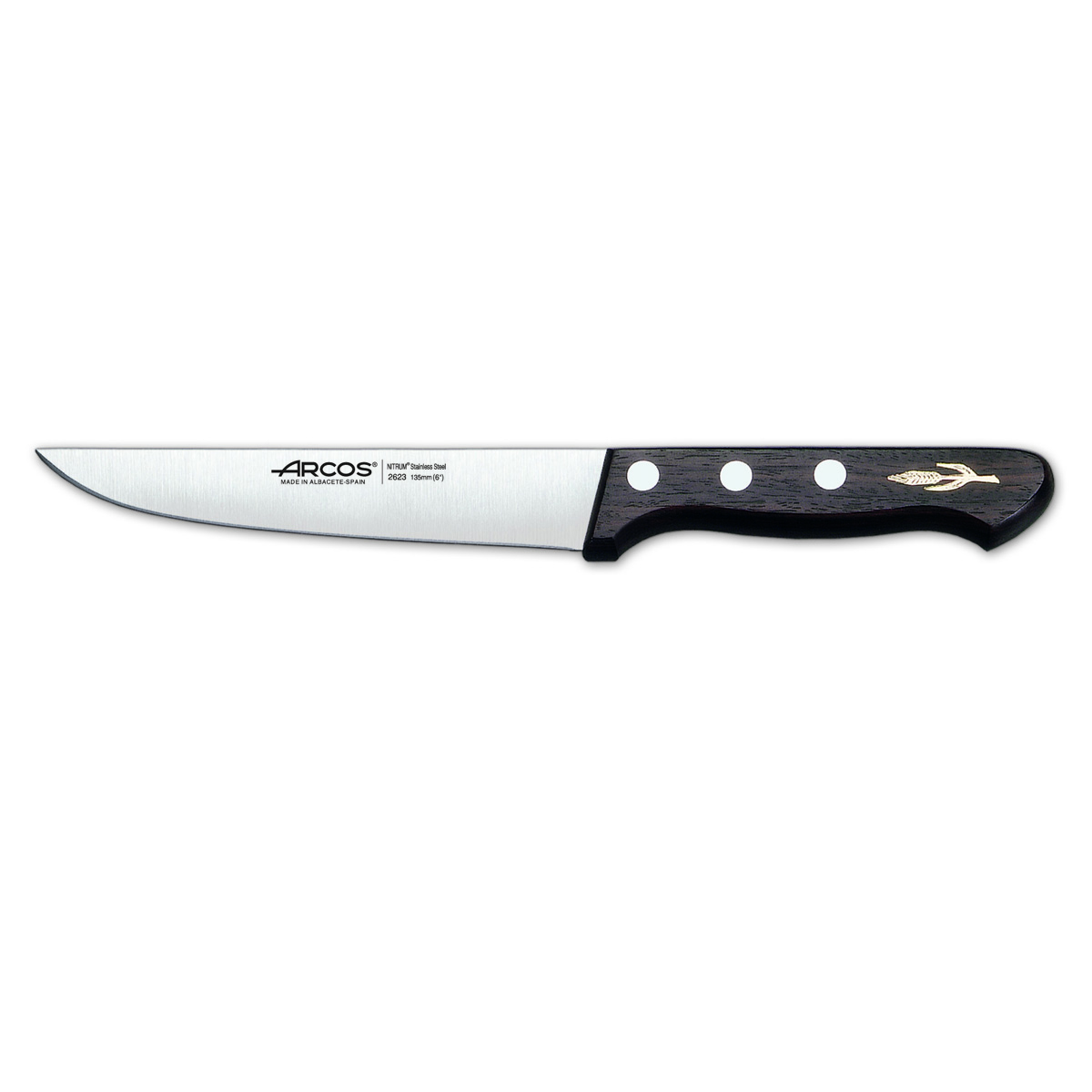 Cuchillo de cocina Arcos Palisandro 262300 de acero inoxidable Nitrum y mango de madera de Palisandro con hoja de 13.5 cm, y Funda Hoja