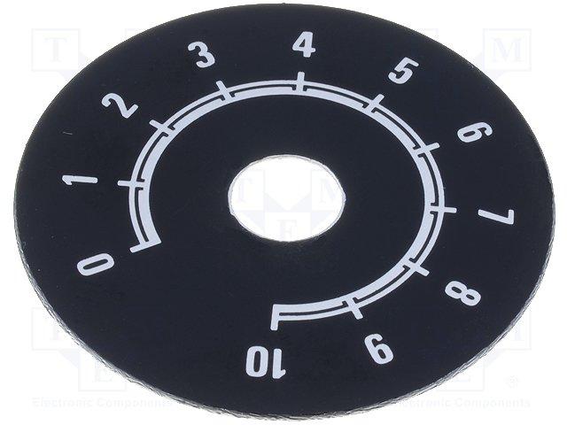 Disco Boton Mando Numerado Escala 0 A 10, Diametro 50mm Fondo NEGRO con referencia de producto 50610-DI
