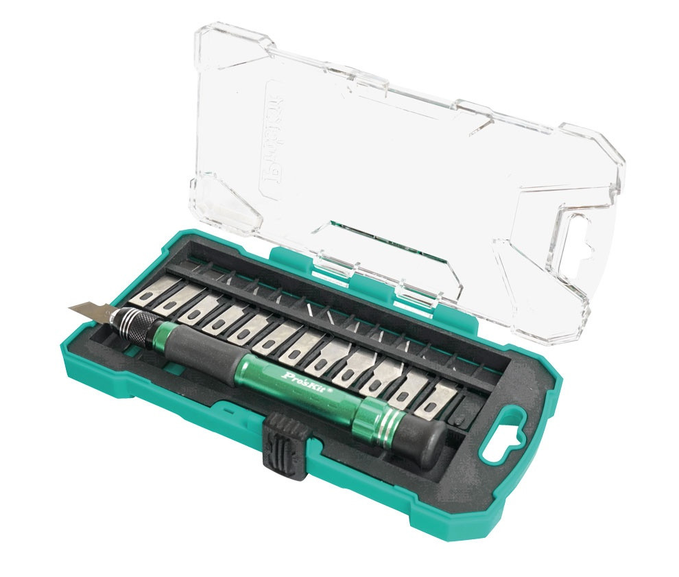Estuche de cúters con mango de aluminio y 13 cuchillas