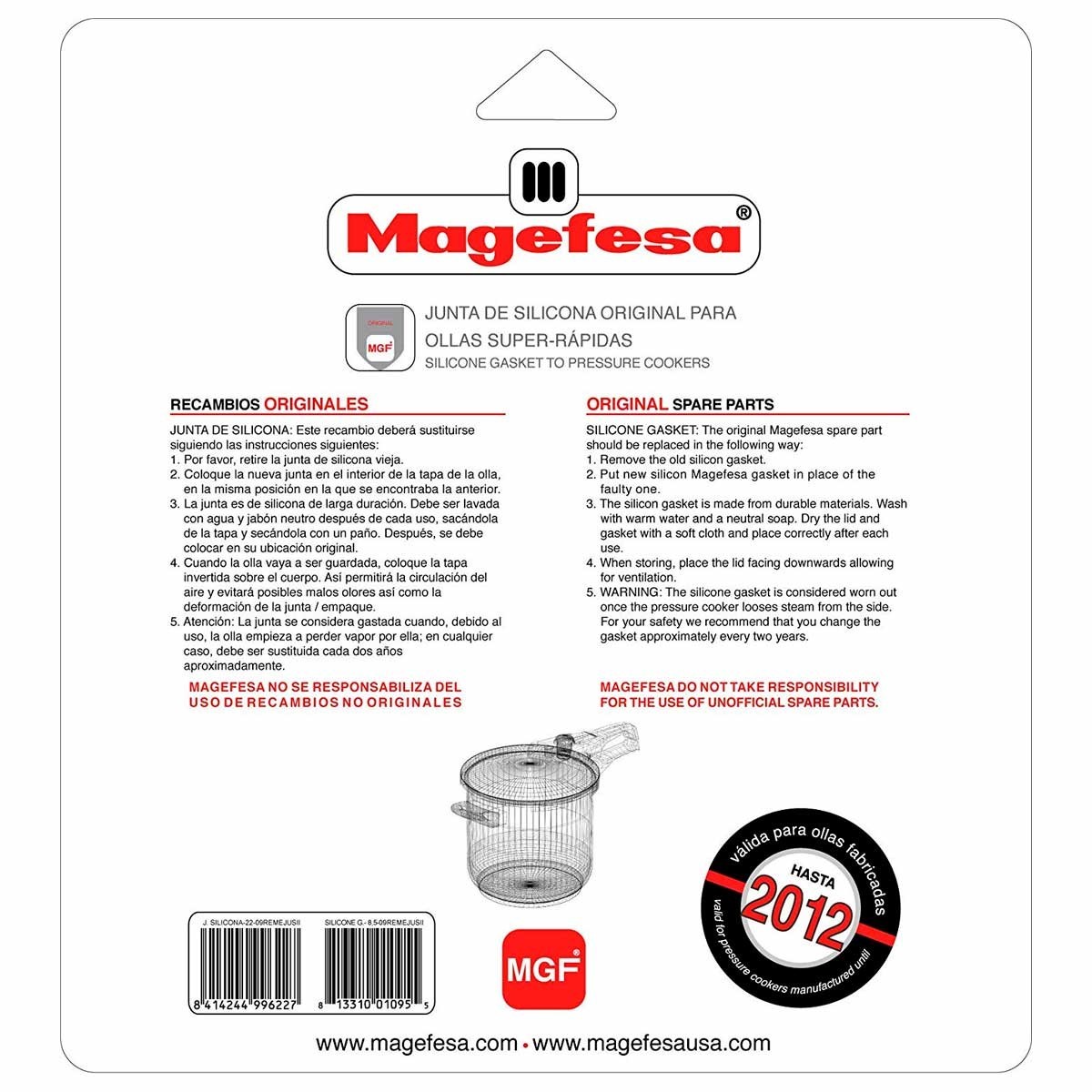 Adaptabilidad Olla MAGEFESA Modelos: SUPERNOVA, MÚLTIPLE, RAPID 2 USA, EUROPRACTIC, EUROPRACTIC COMPLET, RAPID 3 USA, IDEAL, MÁXIMA, MAGELUXE, MAGELUXE LEÑO, MAGESTAR, MAGEPLUS, PRÁCTIKA, PRÁCTIKA LUKE, SUPREMA, ARIAN, FAVORIT, FAVORIT, COMPLET, FAVORIT CONVEX y FAVORIT ULTRALUX.