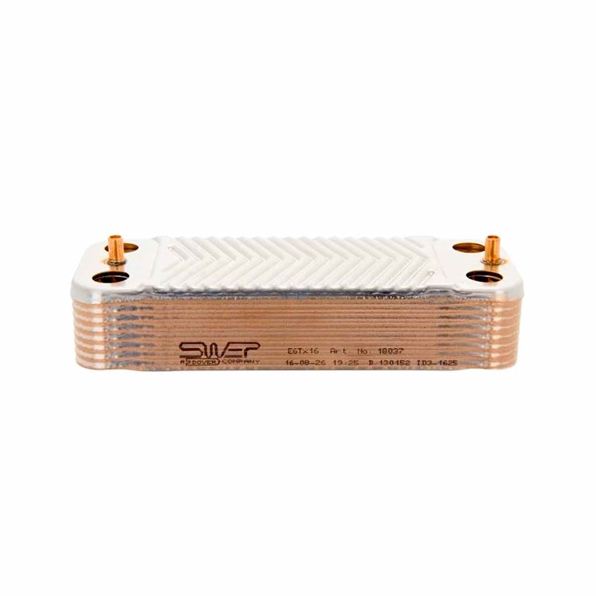 Intercambiador a placas caldera. 16 placas . 34Kw. Medidas: 206mmx76mm. Fijación: 179mm. Adaptabilidad Caldera SAUNIER DUVAL Modelos: ISOFAX, ISOMAX, ISOMAX35, ISOFAST F35 E-A, F28E1, ISOTWIN F24 E1. Código Original Fabricante: 05733000.