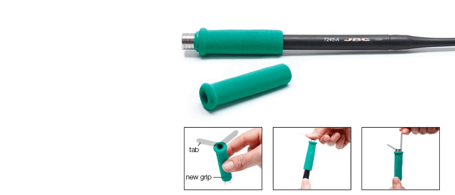 El mango soldador T245-A tiene ahora una empuñadura de espuma suave al tacto que proporciona un mayor aislamiento térmico y reduce significativamente la sensación de calor.
