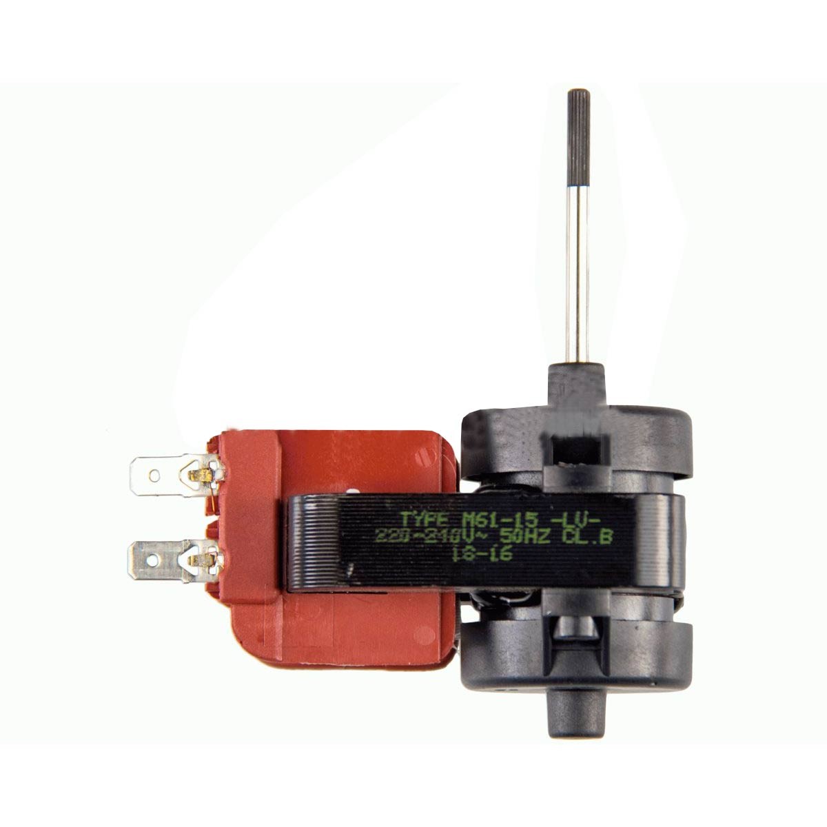 Motor ventilador para frigorífico no frost. Giro horario. Diámetro Eje: 4 mm Longitud 45 mm Voltios: 220V Potencia: 16,5W.