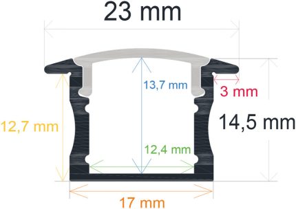 Barra de perfil LED de superficie de aluminio anodizado de 17,4 mm. × 5,8 mm. para colocar en una superficie con una tira LED en su interior