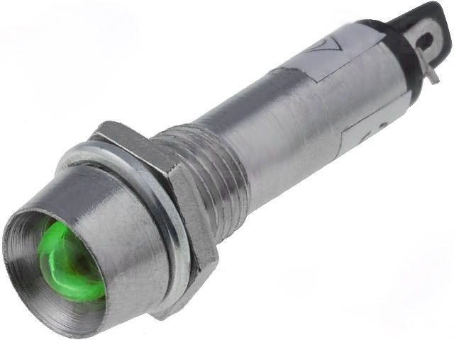 Piloto indicador LED cóncava 24VCC metal color luz VERDE