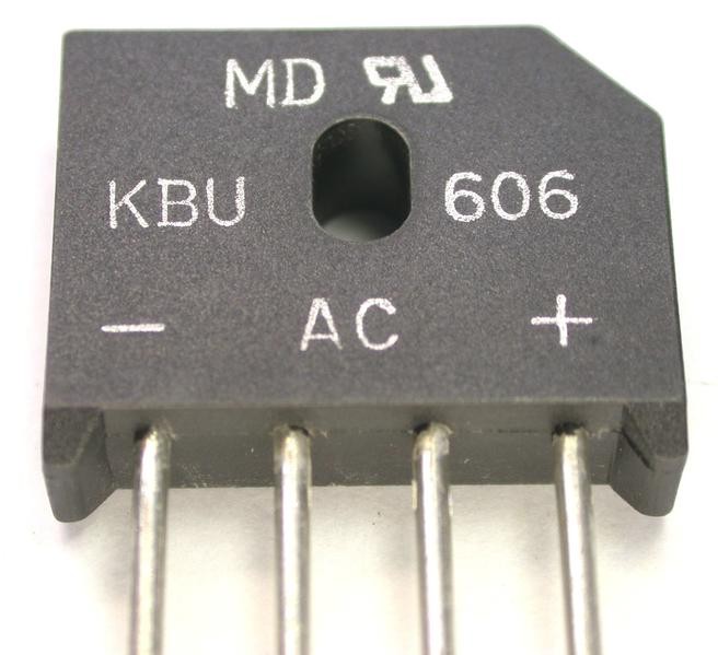 KBU610 Puente rectificador monofásico 1kV 6AmpPuente Rectificador 1000V 6Amp 24x12mm Hilos KBU610 con referencia de producto 17207-DI