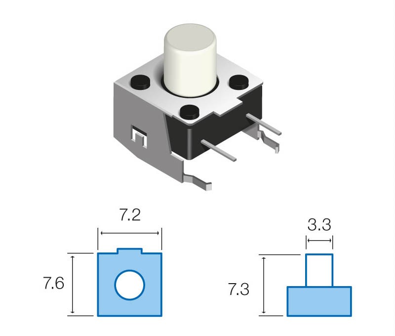 Pulsador de tacto horizontalPulsador Tacto Miniatura Horizontal con referencia de producto 21728-DI