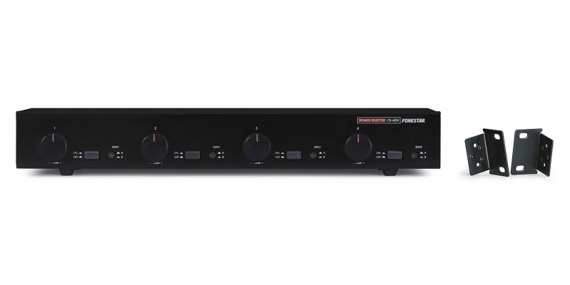 Selector de altavoces esté reo de 4 lí neas de 8 Ω con control independiente de volumen y selecció n de entrada A o B.