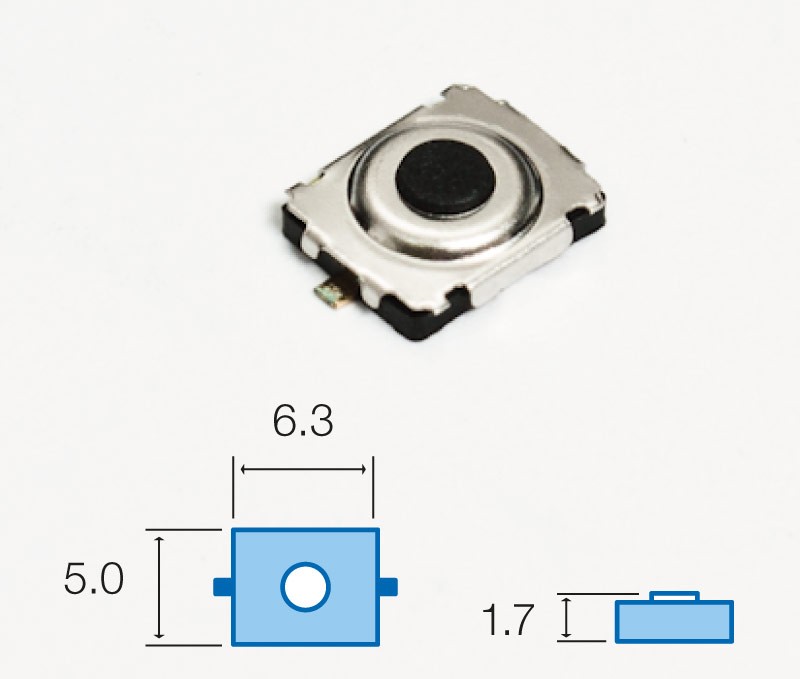 Pulsador de tacto SMD N/CerradoPulsador Tacto SMD 5×6,3mm Altura 1,7mm Cerrado Reposo con referencia de producto 21706-DI y EAN 8436300525981