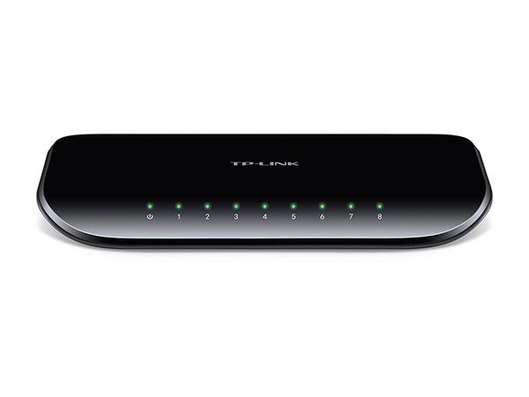 - 8 puertos RJ45 Gigabit con detección automática de velocidad, soporte para MDI/MDIX automático