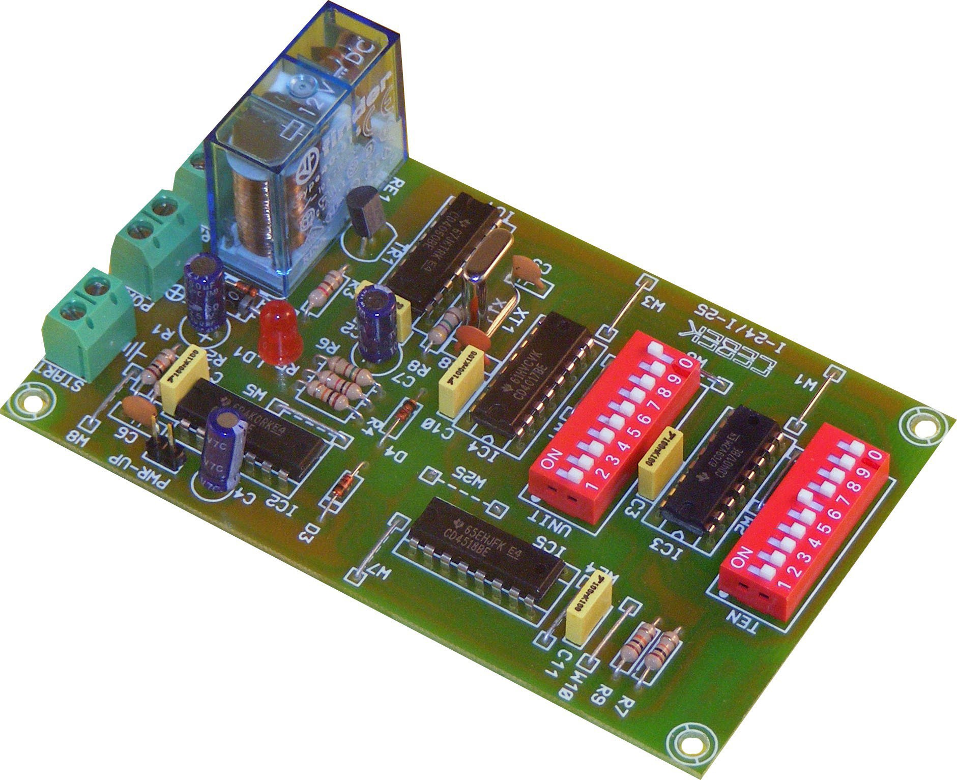 Temporizador decimal de elevada precisión con salida a relé. Al activar el módulo conectará la salida durante el tiempo pre-ajustado. La selección del tiempo se realiza en decimal mediante dos baterías de micro switches incorporadas en los circuitos. Tiempo ajustable según modelo. Especialmente indicado para aplicaciones donde se requiera una gran precisión. Incorpora led de señalización y Protección contra la Inversión de Polaridad, (P.I.P.). Fuente de alimentación recomendada: FE-12-DI3
