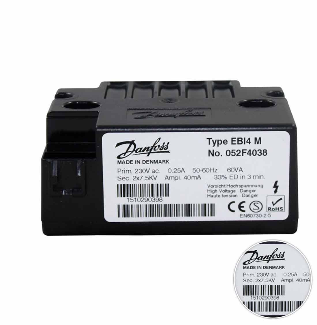 Transformador DANFOSS para quemador de caldera gasóleo. Modelo: 052F4038EBI4M / 052F0033 Código Original Fabricante: 4241020