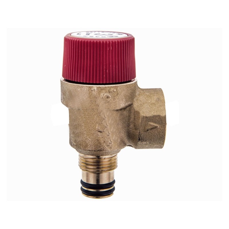Válvula seguridad caldera. Presión Máxima: 3 Bar. Conexiones: Macho – Hembra. Rosca: 1/2″ Adaptabilidad Caldera FERROLI Modelos: FERELLA F24MEL, entre otras. Código Original Fabricante: I39809740